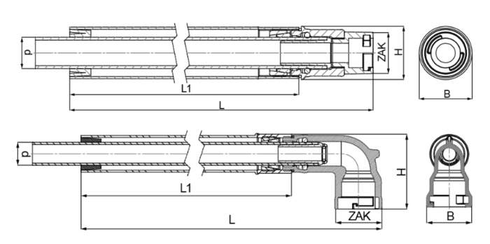 | 618-04 | Potrivire de tranziție - capătul de vârf ZAK® (ZAK 46) pe filet extern |